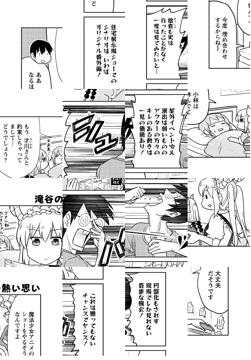210万部突破の大人気人外系コメディ「小林さんちのメイドラゴン」のスピンオフ「カンナの日常」「エルマのOL日記」「ルコアは僕の××です。」「お篭もりぐらしのファフニール」が最初から読めちゃうお得なコーナー!