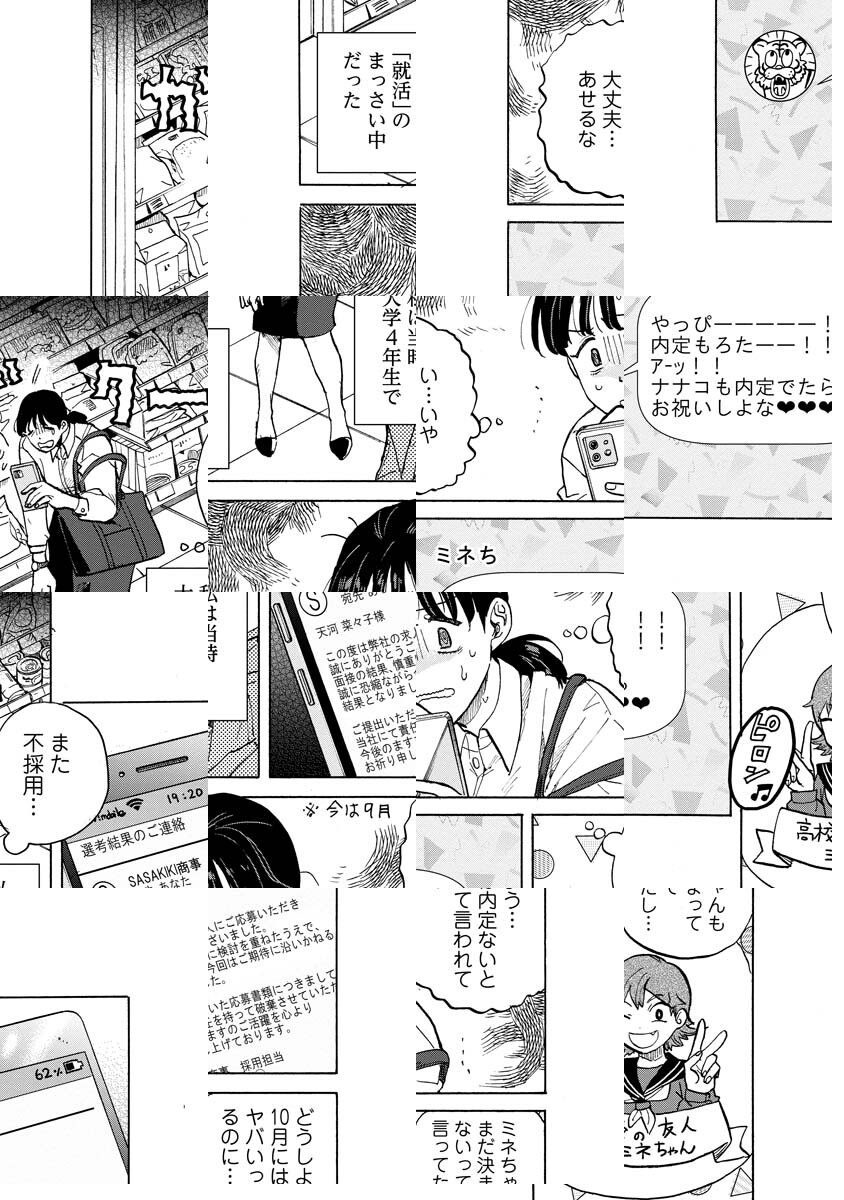 絶賛就活中の菜々子は不採用の連続で、心が折れかかっていた。そんなとき、中学生のマユと知り合い、懐かれる。自分を必要としているマユと一緒にいると、自己肯定感に満ちていく菜々子だが…。