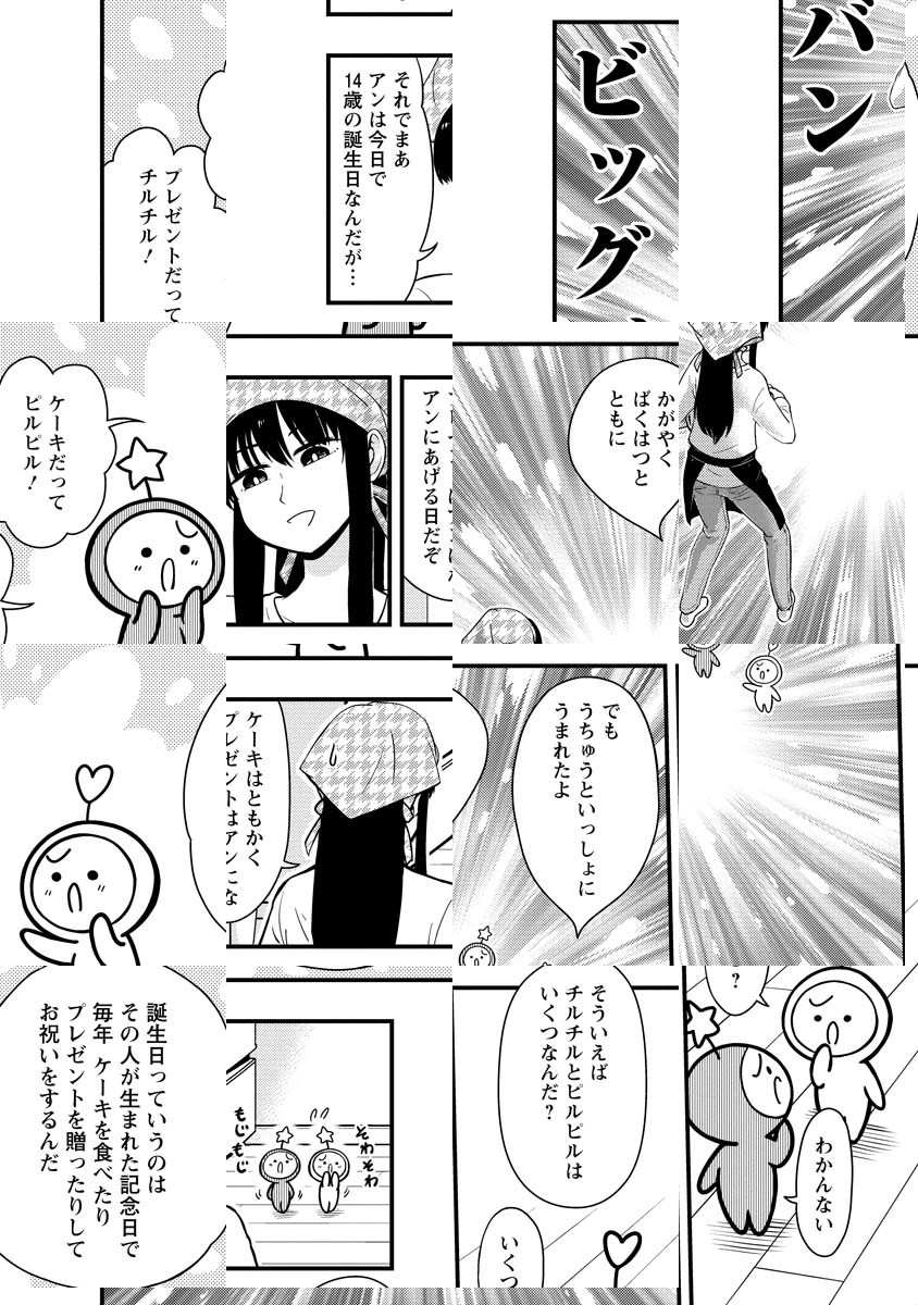 お姉ちゃんと二人暮らしのさとり系中学生・山村アン。ある日の学校の帰り道、拾ってしまったのは不思議な妖精×2で……。かわいいけどちょっぴりめんどくさい、宇宙から来た妖精・チルチル&ピルピルとのふしぎな同居生活スタート♪