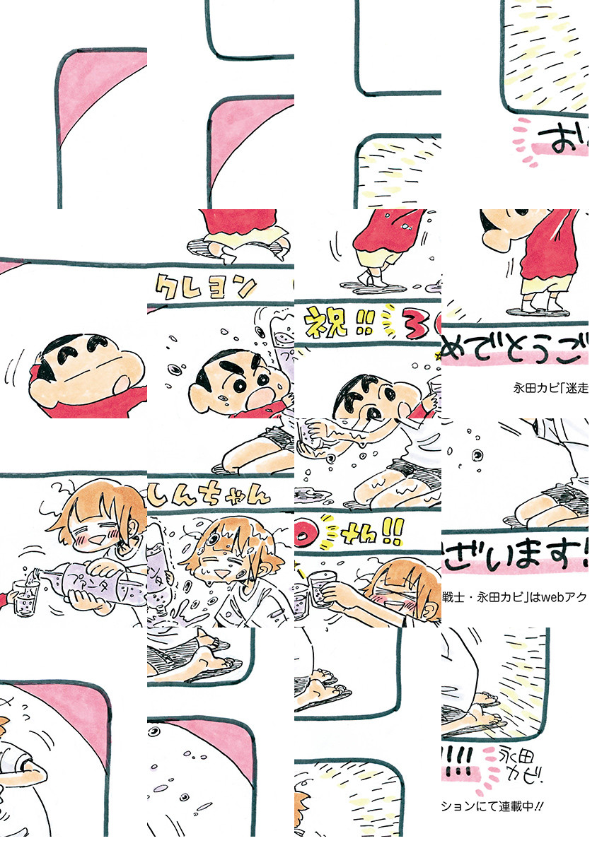 オラ、野原しんのすけ! 5歳児のまま30周年を迎えたゾ。たくさんの漫画家さんがお祝いでオラのことを漫画にしてくれたゾ。今週登場の漫画家さんをご紹介するゾ。スペースの都合上、敬称略だゾ。