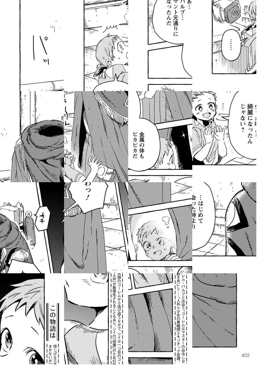 人間が消え文明だけが取り残された世界で、自分の記憶を探す少女「シイ」。彼女は一つ目のゴーレム「バルブ」と出逢うが、ゴーレムは"人間への奉仕"を行う自律式人形で…?これは、命有る者と無き者との絆が世界を変える物語。