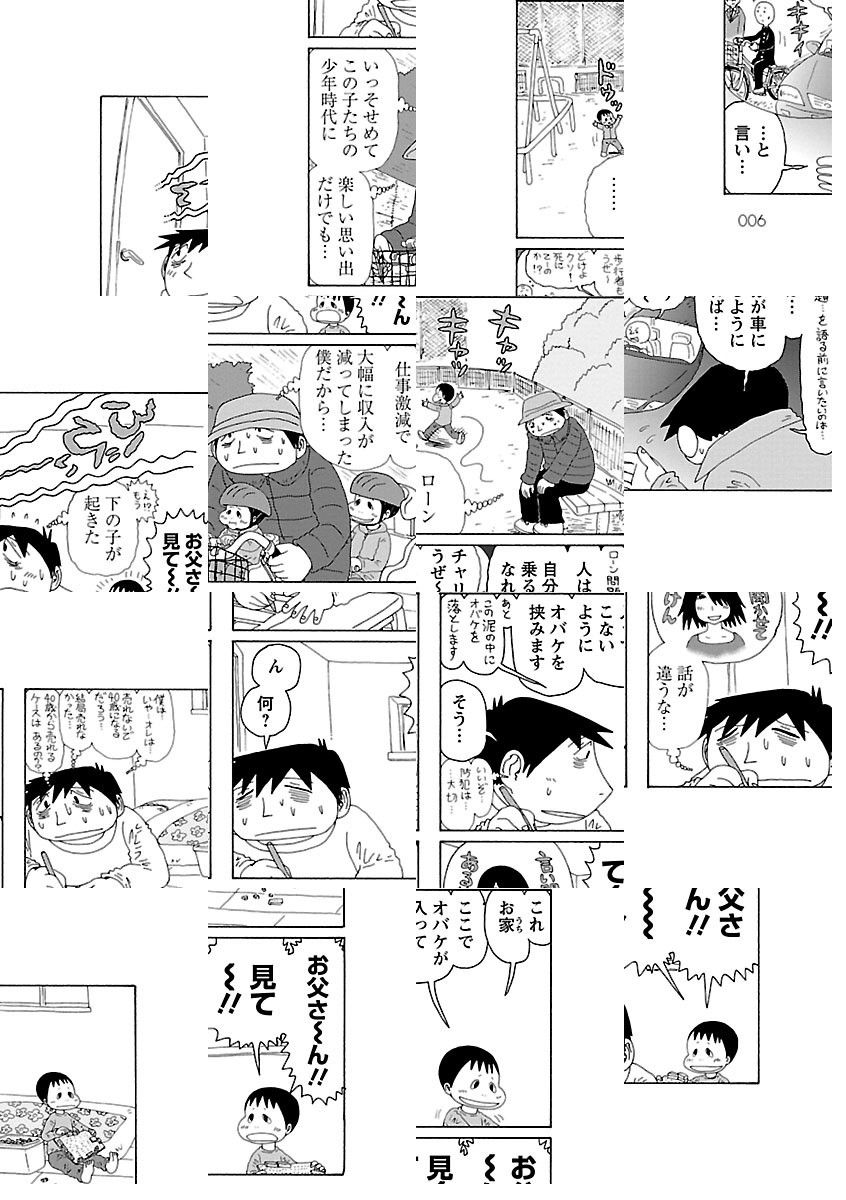 福満サーガ第3作。「モーニング」と「漫画アクション」で同時連載が始まり仕事が増え、上の子ちゃん、下の子ちゃんが誕生、小学校へ上がる前の頃のお話です。