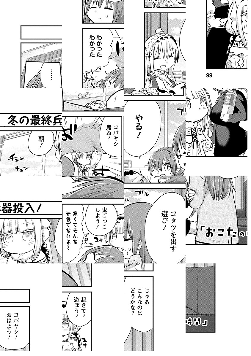 210万部突破の大人気人外系コメディ「小林さんちのメイドラゴン」のスピンオフ「カンナの日常」「エルマのOL日記」「ルコアは僕の××です。」「お篭もりぐらしのファフニール」が最初から読めちゃうお得なコーナー!