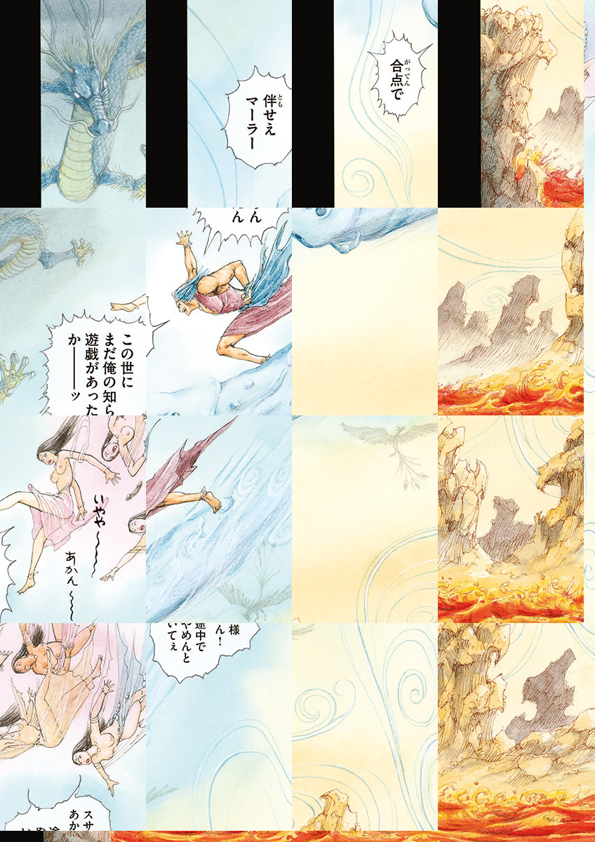 『MANDARA』に掲載されたオールカラー漫画。主人公のスサはスサノオ!『古事記』をベースに王欣太の想像力が限定解除した冒険活劇ロマン。