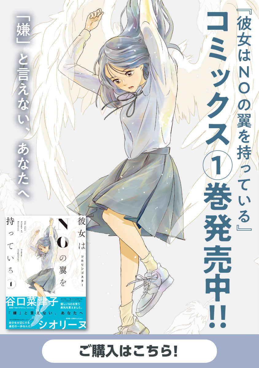 お酌って本当に必要? まわりが急にメイクしはじめたら…私も? 男友達の下ネタがエグすぎてついていけない…。 「人に嫌われたくない」「空気を壊すんじゃないか?」 そんな思いから、なかなかNOと言えない人たちの想いや関係性を、 「NO」を大切にする高校生のつばさが、少しずつ変えていく――… 本当は私たちの誰しもが必ず持っている、NOの翼の物語。