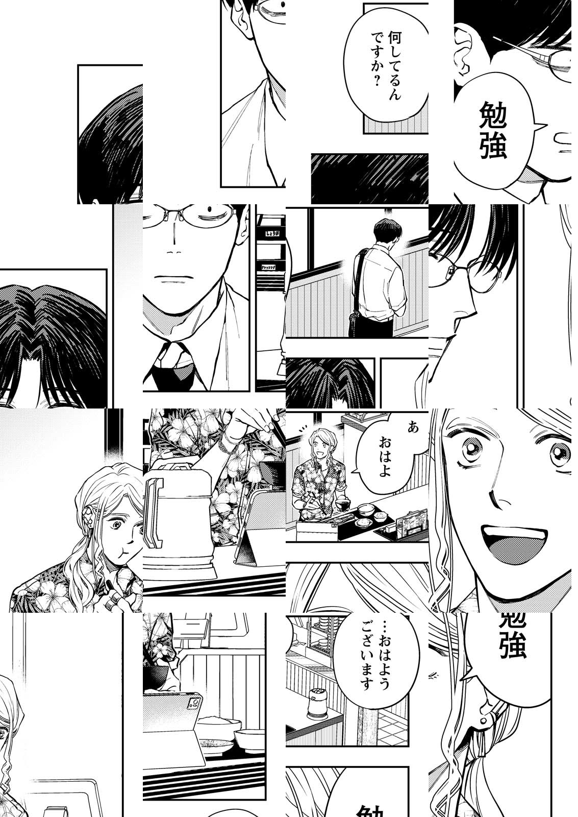 午前5時、歌舞伎町の牛丼屋で出会った、社畜の直人とホストの蓮。並んで朝ごはんを食べるだけのちょっと不思議な関係が始まる――真逆な時間軸を生きる二人が唯一交わる15分を描いたモーニングルーティンストーリー。