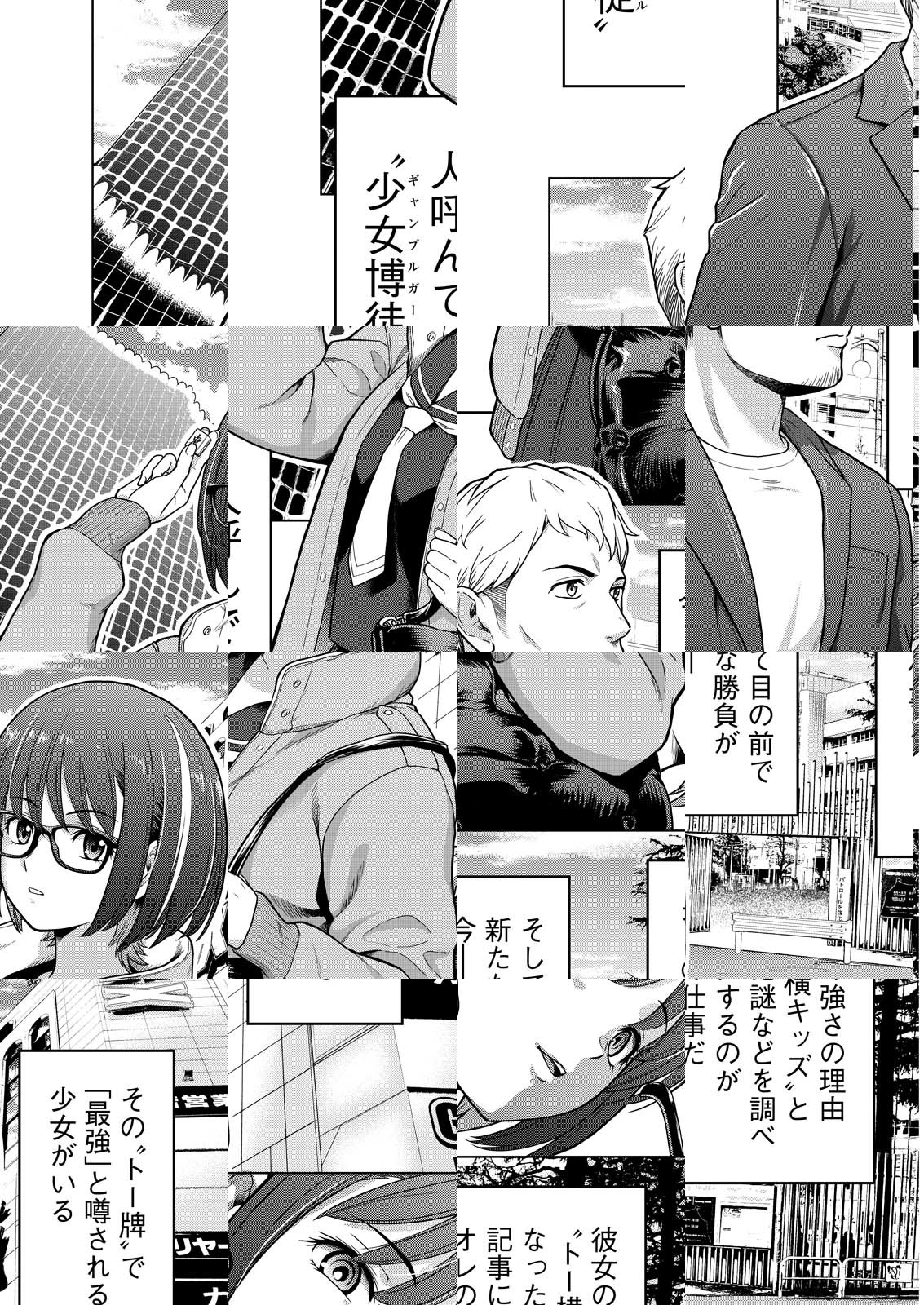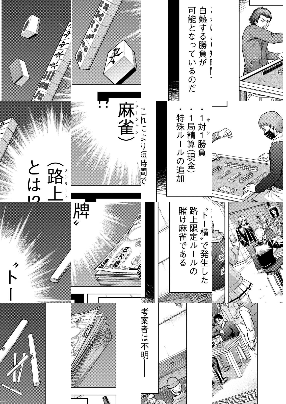 新宿トー横で行なわれている1対1の路上特殊麻雀。ここで最強の名をほしいままにする少女・えすかがいた。彼女は自由を、麻雀で勝ち取ってきた――。