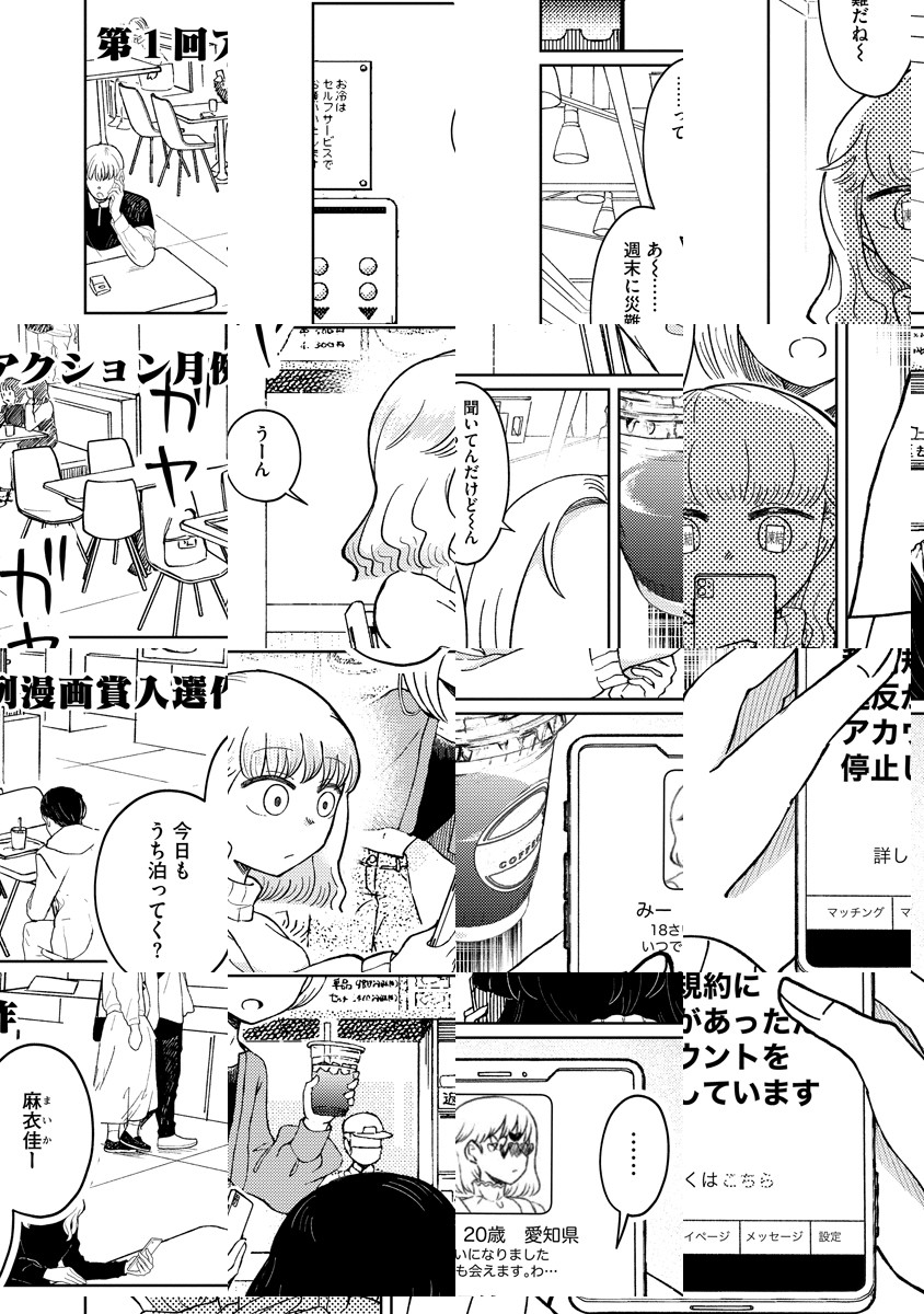 非行少女・麻衣佳が盗みに入った家で出会ったのは、返り血まみれの少女・詩だった――。第1回アクション月例漫画賞入選作