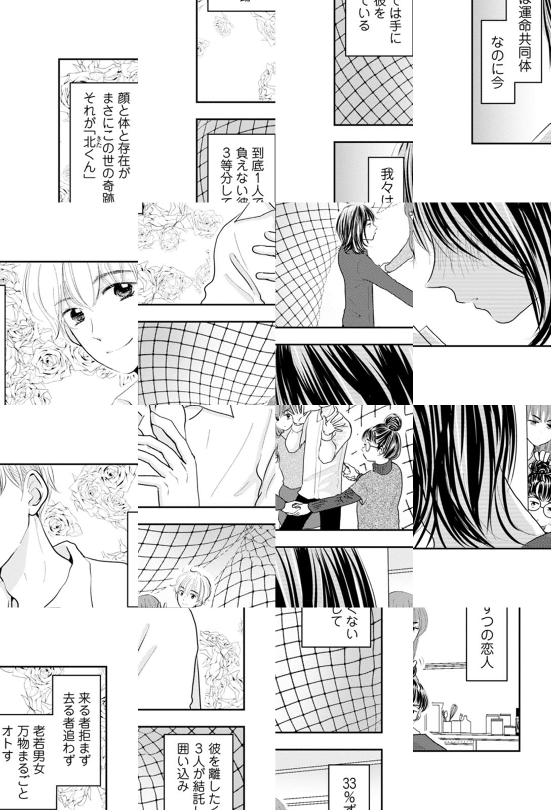 極上イケメンヒモ男・北くんを繋ぎとめるべく、彼に恋する3人の男女が手を組み導き出した答え、それが【カレをシェアするシェアハウス】生活!! 100%は望めない、0%は耐えられない、だから今は33%ずつの恋人でいい――