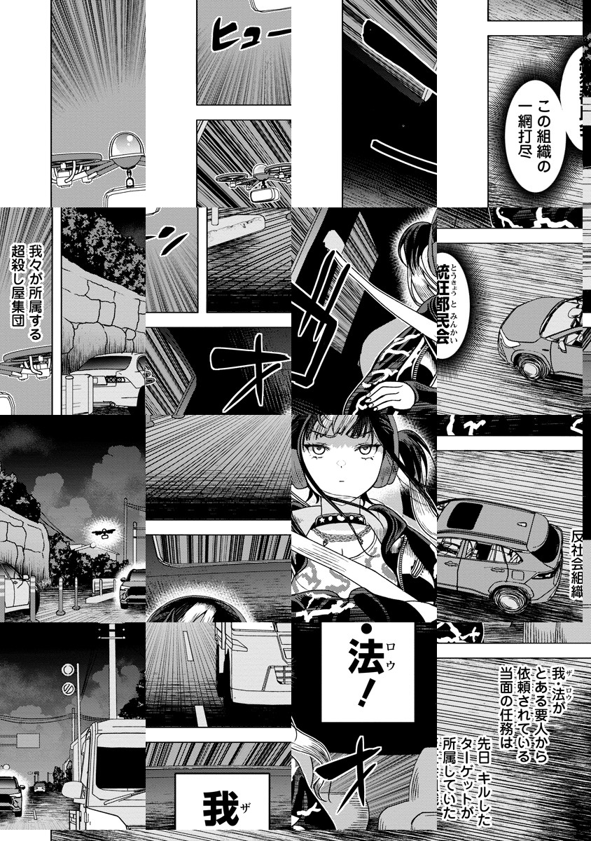 組織NO.1の殺し屋・ジライア。 プロフェッショナルである彼女は、極限の集中力を維持するため空腹で仕事に臨む。 しかし、ひとたび任務を終えたその瞬間——全てをリセットするように、今日も豪快に“メシ”を喰らう!