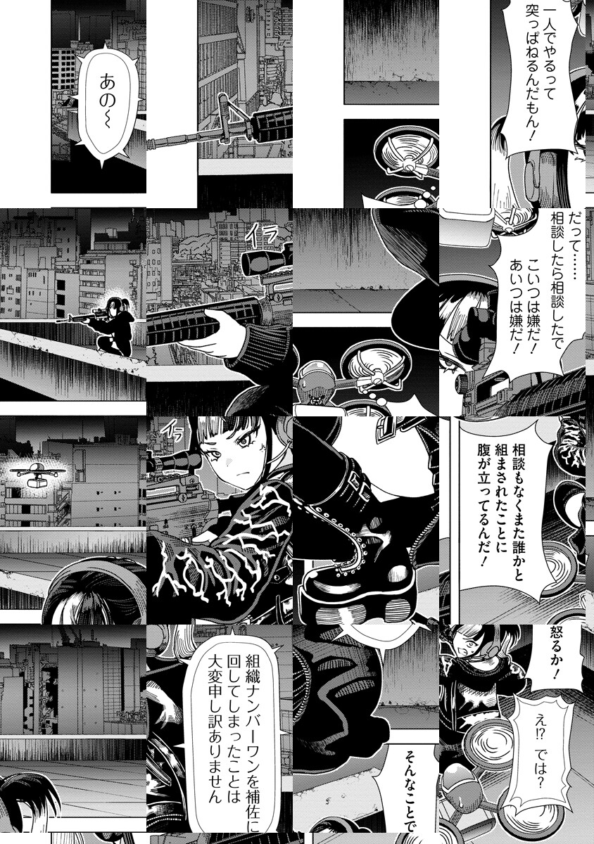 組織NO.1の殺し屋・ジライア。 プロフェッショナルである彼女は、極限の集中力を維持するため空腹で仕事に臨む。 しかし、ひとたび任務を終えたその瞬間——全てをリセットするように、今日も豪快に“メシ”を喰らう!