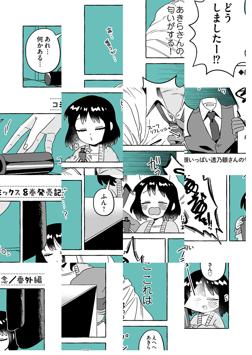 夜香さんが勤める探偵事務所の主は、スマートで優しい「透明男」の透乃眼さん。たとえ姿を消していても、目の見えない夜香さんには不思議と彼の居場所がわかってしまうのです。個性的な同僚に見守られて今日も赤面オフィスワーク♪