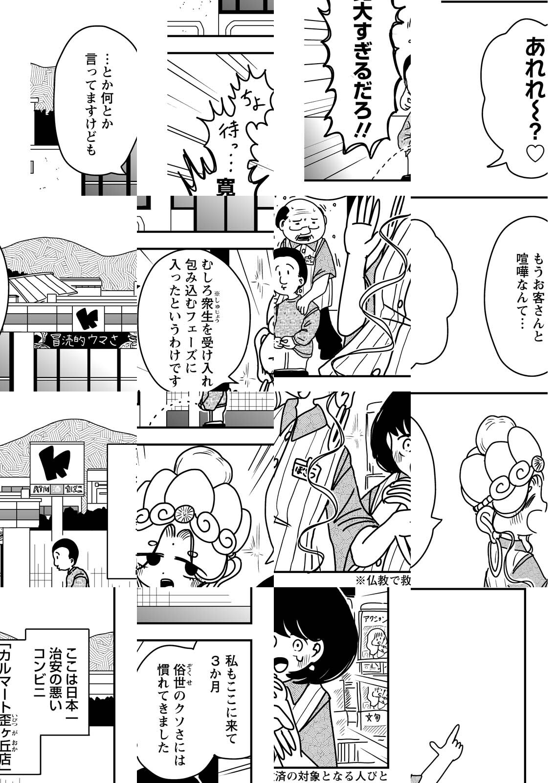 日本一クソ客の多いコンビニ「カルマート歪ヶ丘店」。 店の惨状を見かねて救いの手を差し伸べるべく、向かいの寺の本尊・菩薩ちゃんが顕現するのだった。 しかし、菩薩ちゃんのキャパをはるかに超えるクレーマーばかりで…!? ブチギレ菩薩によるカルマ救済コメディ!