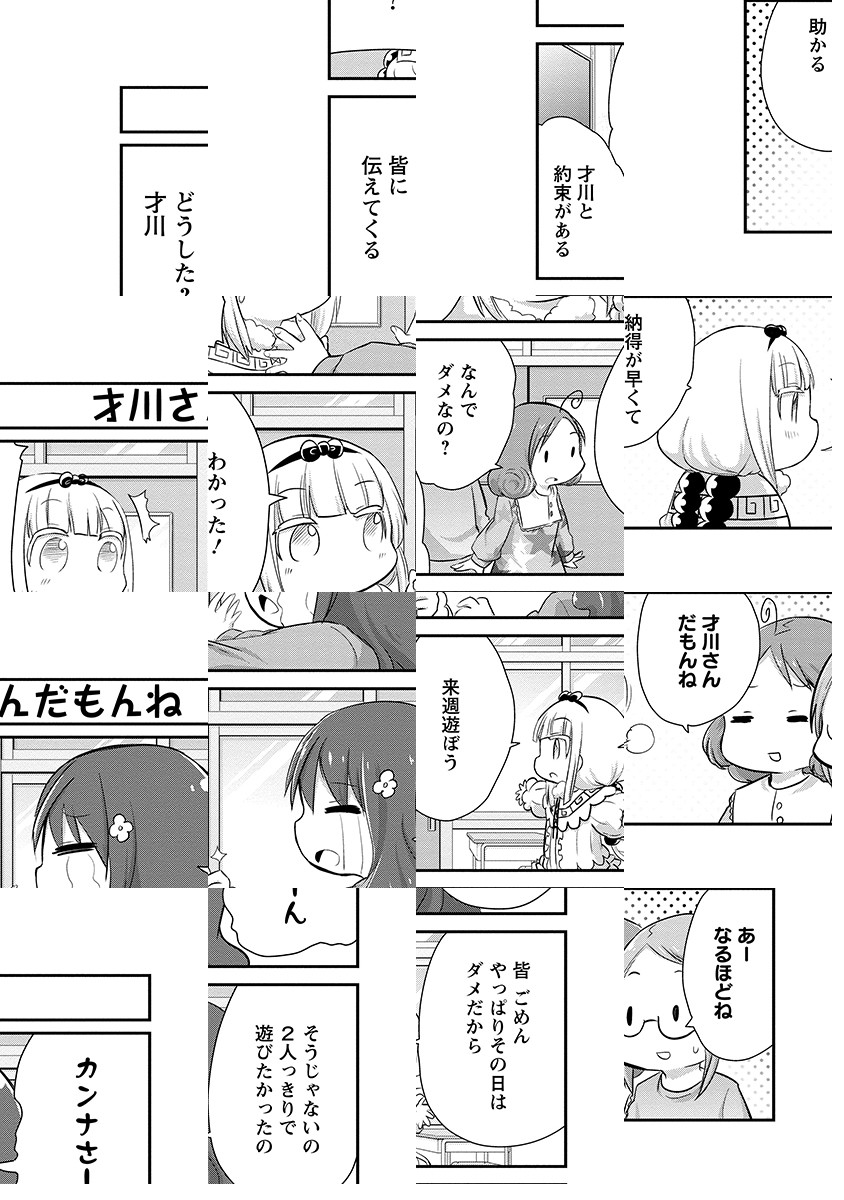 210万部突破の大人気人外系コメディ「小林さんちのメイドラゴン」のスピンオフ「カンナの日常」「エルマのOL日記」「ルコアは僕の××です。」「お篭もりぐらしのファフニール」が最初から読めちゃうお得なコーナー!