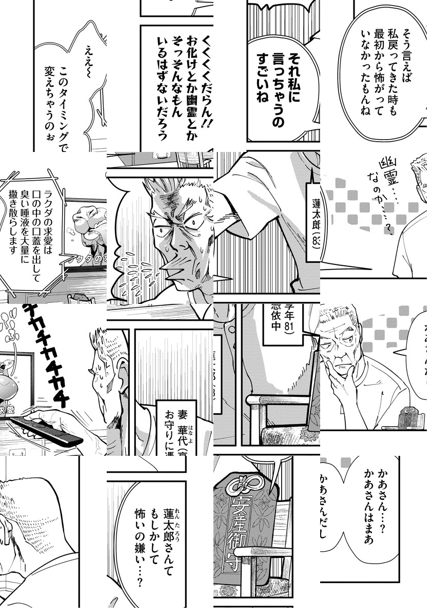 頑固で職人気質で一人暮らし、そんな元大工のおじいさんのもとに亡き妻が「お守り」の姿で帰ってきた…!? 老人とお守り(妻)の新夫婦生活。