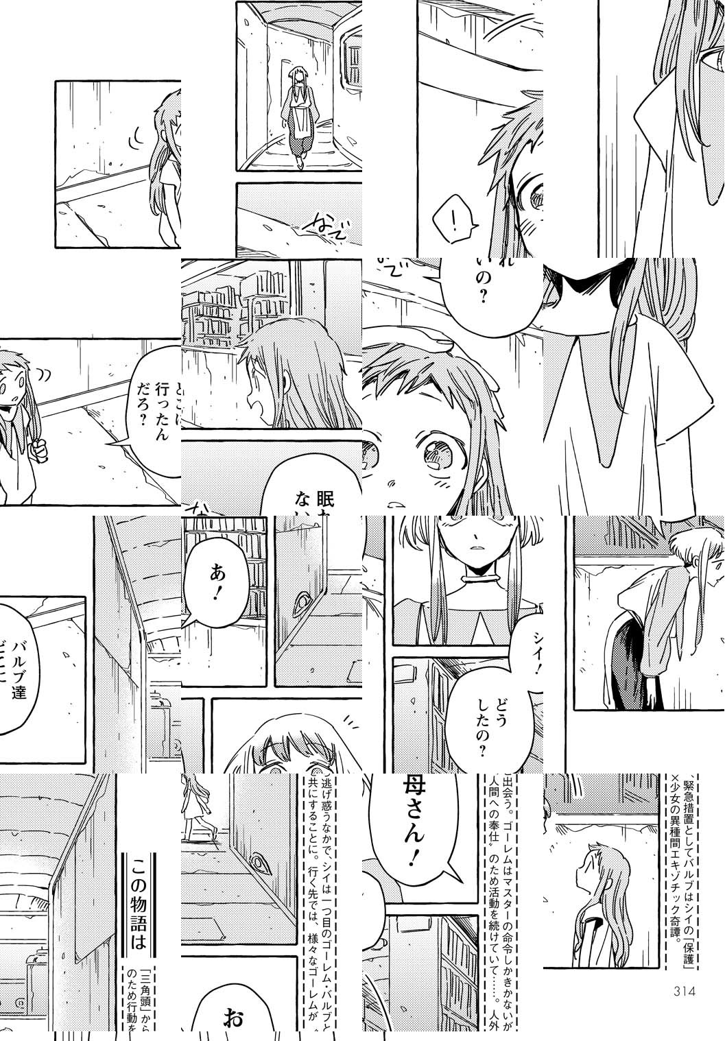 人間が消え文明だけが取り残された世界で、自分の記憶を探す少女「シイ」。彼女は一つ目のゴーレム「バルブ」と出逢うが、ゴーレムは"人間への奉仕"を行う自律式人形で…?これは、命有る者と無き者との絆が世界を変える物語。