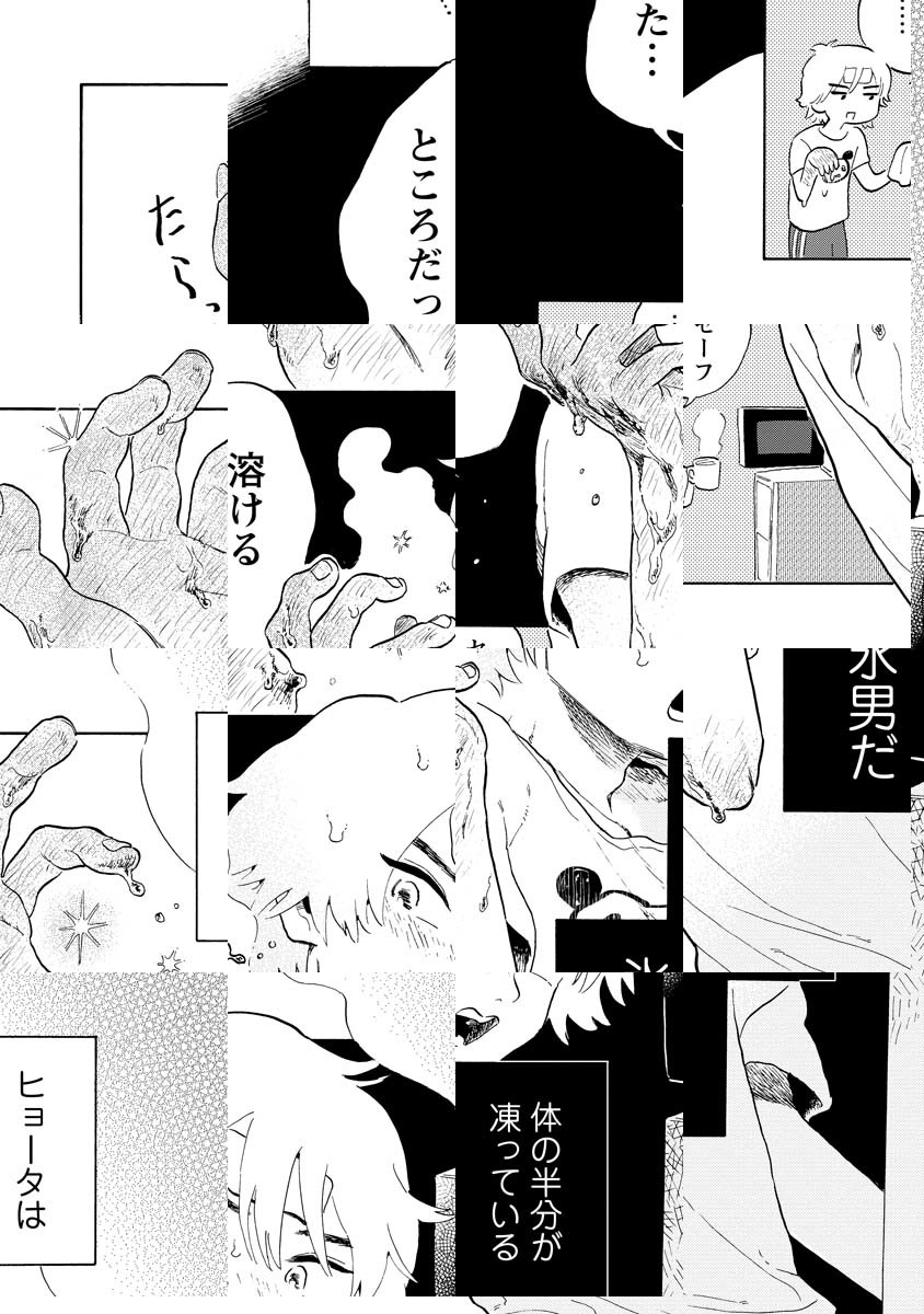 「ヒョータという名前は私がつけた。ヒョータは人間ではない。ヒョータは体の半分が凍っている氷男だ。ヒョータの飼育が私の日課だ」飼い主のしきみとペットのヒョータの刺激的な生活――