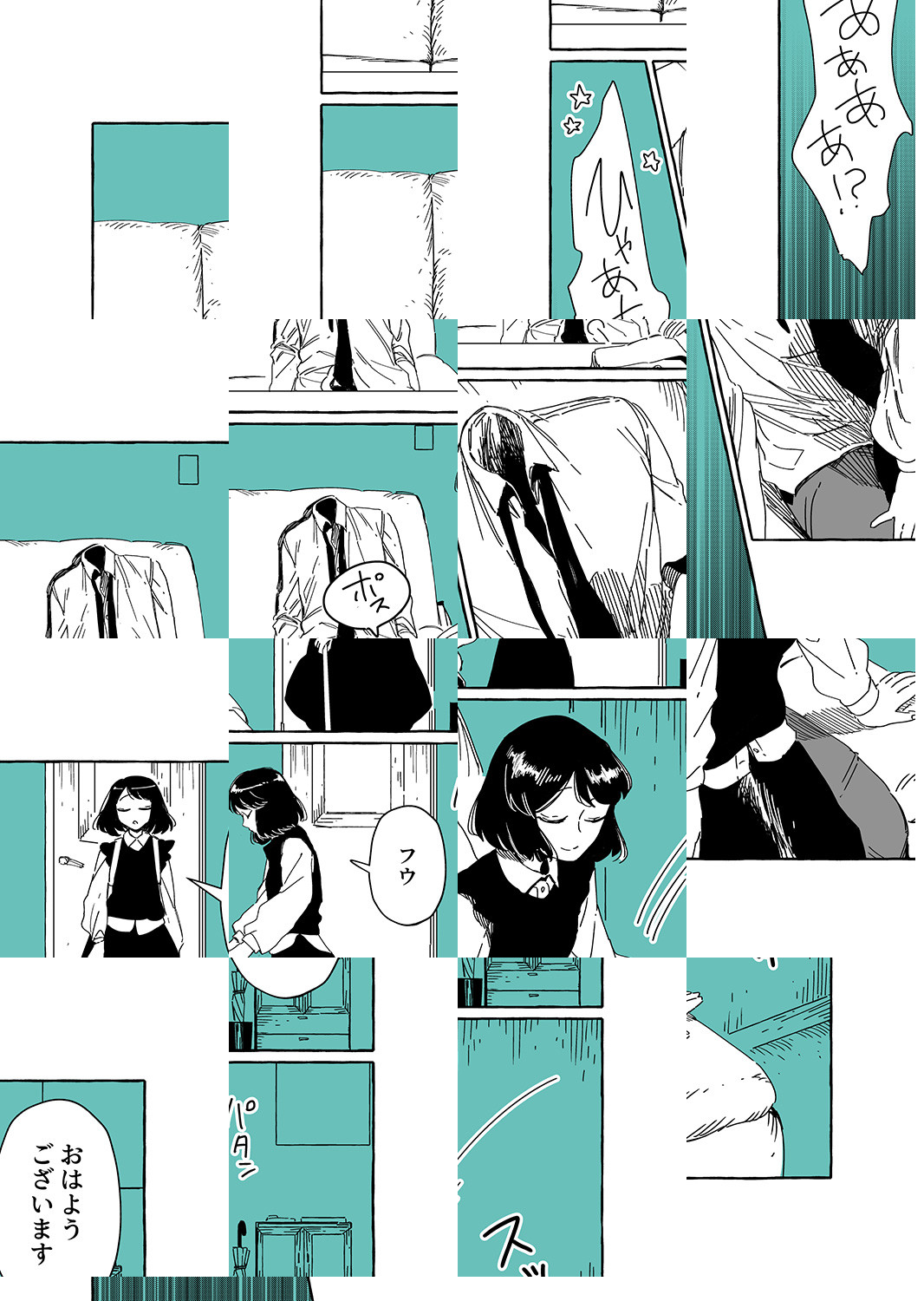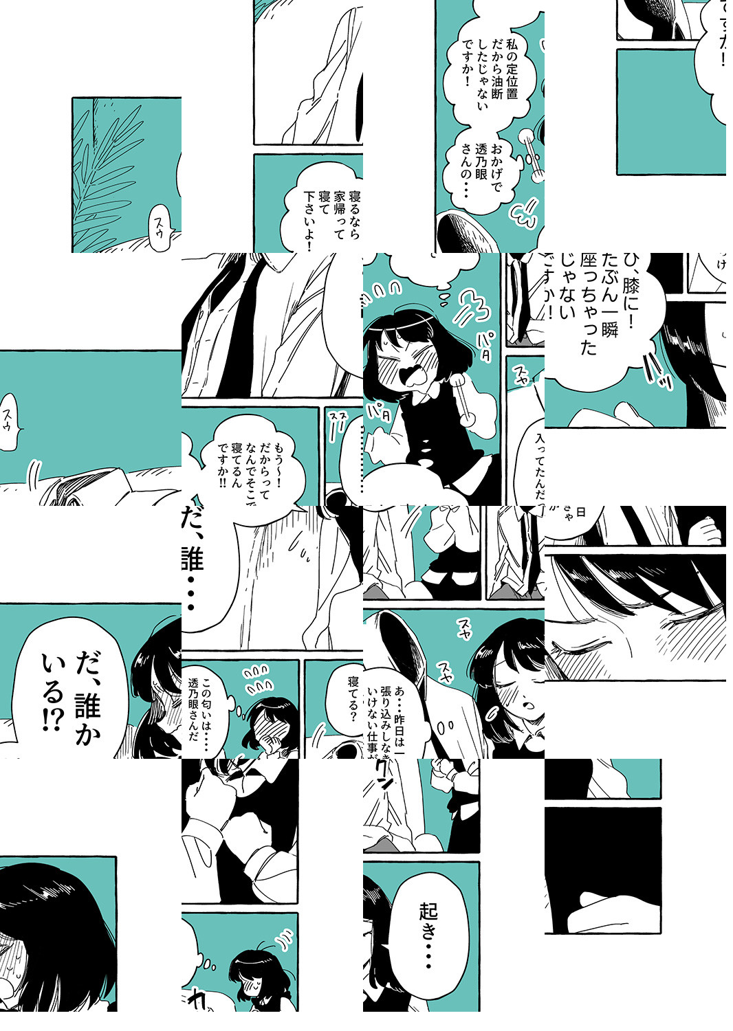 夜香さんが勤める探偵事務所の主は、スマートで優しい「透明男」の透乃眼さん。たとえ姿を消していても、目の見えない夜香さんには不思議と彼の居場所がわかってしまうのです。個性的な同僚に見守られて今日も赤面オフィスワーク♪