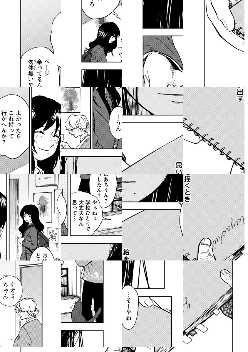 「放課後、絵描くん手伝ってくれへん?」大阪の美術高校に通うレンジは、クラスメイト・ナオミに誘われ、彼女の秘密の創作を手伝うことになる。異形の才能・ナオミを前に、レンジのプライドはズタズタに引き裂かれるが、次第に彼女に魅入られていく……。大型新人が放つ鮮烈なアートと青春の物語。