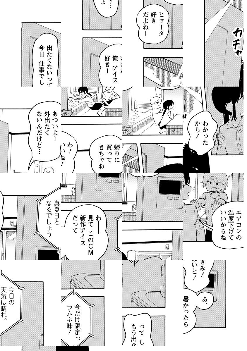 「ヒョータという名前は私がつけた。ヒョータは人間ではない。ヒョータは体の半分が凍っている氷男だ。ヒョータの飼育が私の日課だ」飼い主のしきみとペットのヒョータの刺激的な生活――