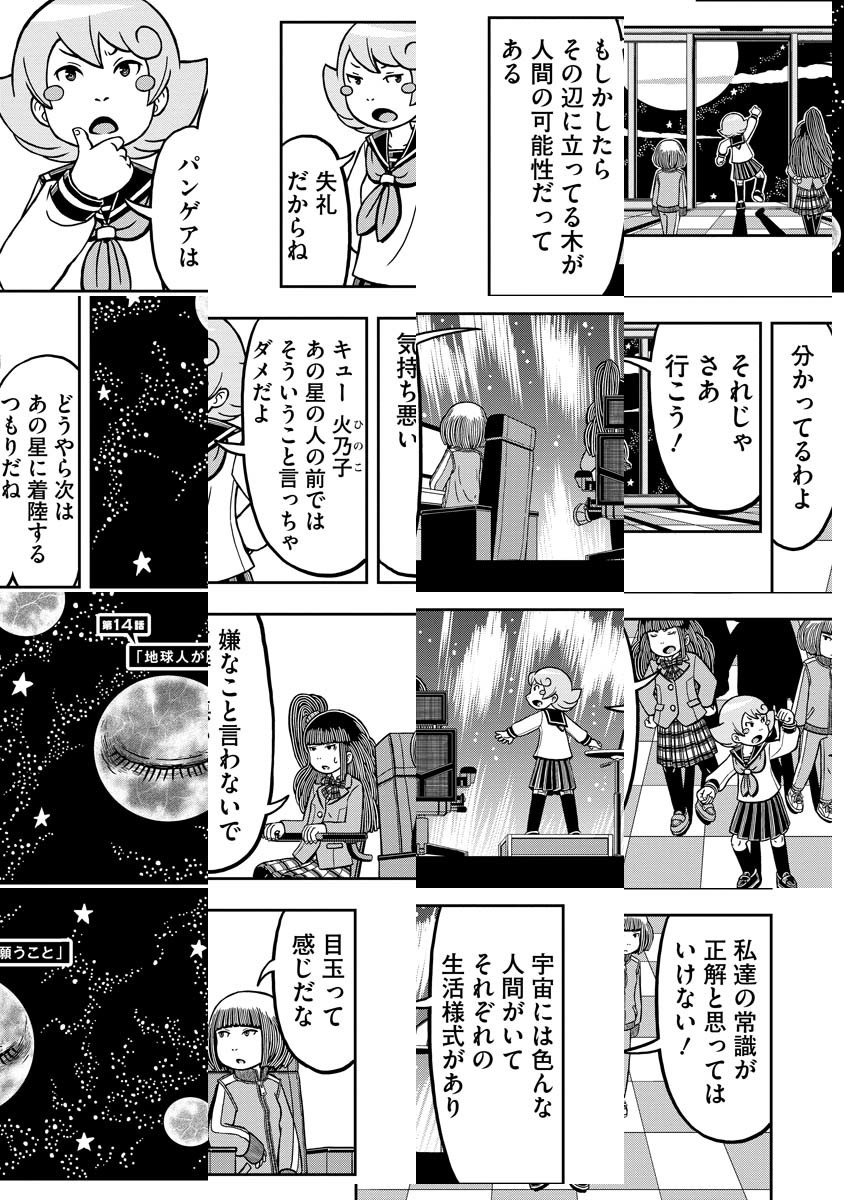 福井県生まれです。この世には土星生まれの人や太陽系の外生まれの人もいるはずです。宇宙は広大で隅々まで確認することは誰にもできません。今こうしている間も宇宙船で大冒険している人達がいると思うとワクワクしてきます。そんな見ることのできない世界を漫画で表現できたらいいなと思います。https://twitter.com/ringowaringoaji