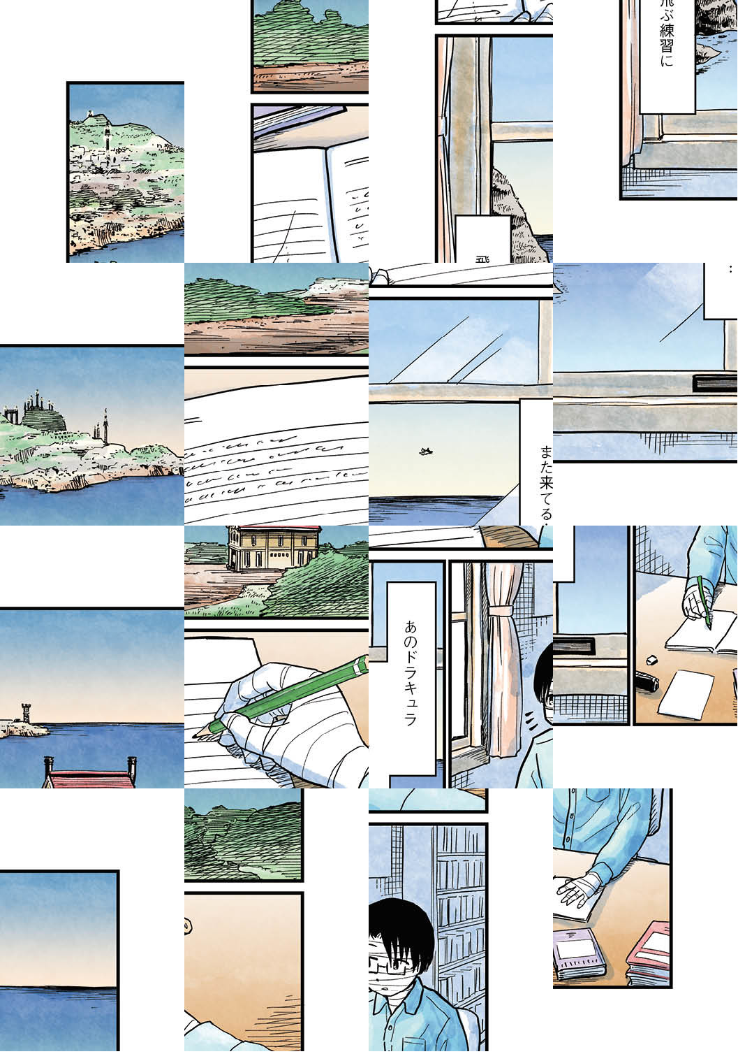 空飛ぶ練習で何度も失敗を繰り返す中学生のドラキュラ。その姿を家の中から見ている、肌が弱くてあまり外に出られない中学生のミ イラ男。空を飛ぶ練習を通じて心を通わせる二人。気付けばそこに、友情があった。