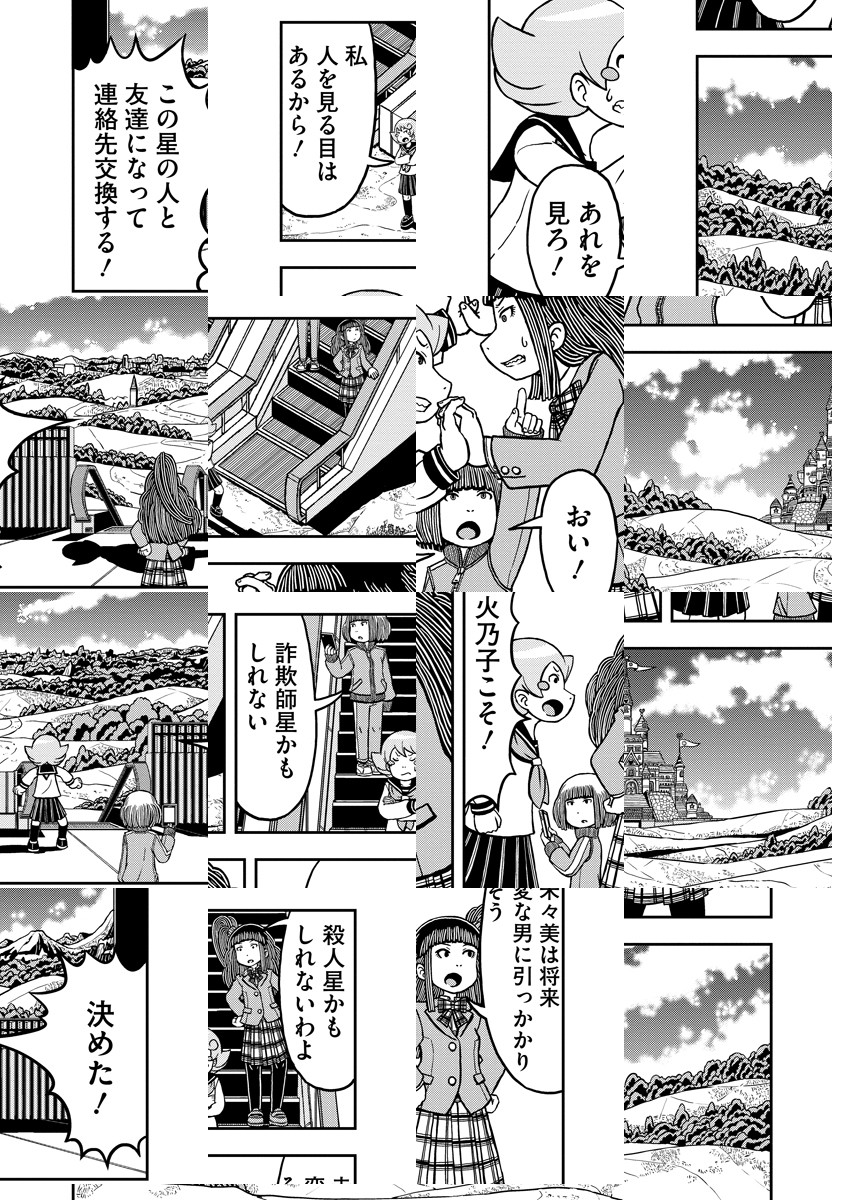 福井県生まれです。この世には土星生まれの人や太陽系の外生まれの人もいるはずです。宇宙は広大で隅々まで確認することは誰にもできません。今こうしている間も宇宙船で大冒険している人達がいると思うとワクワクしてきます。そんな見ることのできない世界を漫画で表現できたらいいなと思います。https://twitter.com/ringowaringoaji